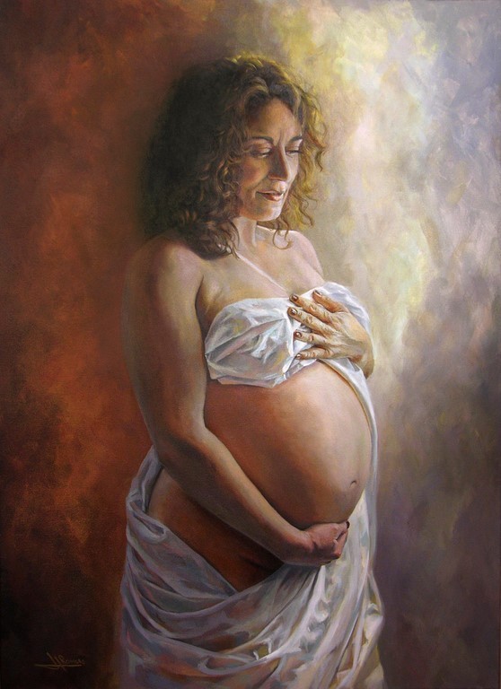 Instantes entrañables, pintados con delicadeza y ternura, como una madre acariciando su bebe aún en sus entrañas. Siempre con su sello particular que es la transparencia y el enfoque directo, que borra de un plumazo, las posibles interpretaciones de sus obras, ya que no existe margen de error por su claridad y representación que están perfectamente definidas.
