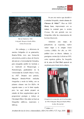 Margaret Bourke-White realizaba como reportera gráfica. Su fotografía