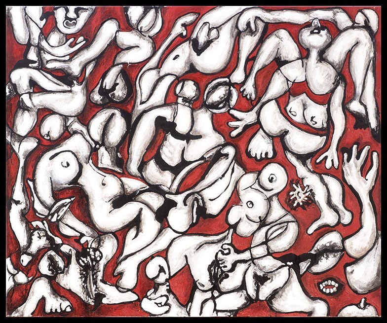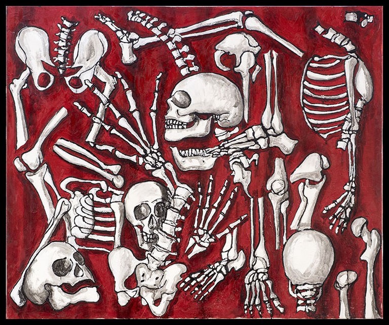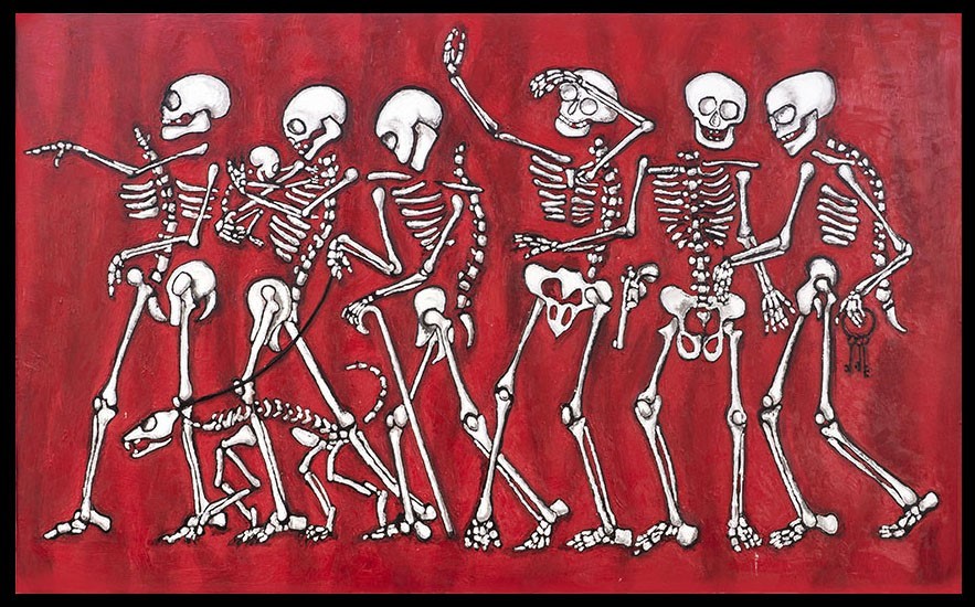 Esta “transparencia” es el objetivo expresivo que declara el artista, y para ello se nutre de figuras muy nítidas pero que, curiosamente, rozan la abstracción. La exposición está además llena de esqueletos pero éstos, lejos de dar miedo, traen el humor y la ironía a la obra, otro de sus rasgos de identidad.