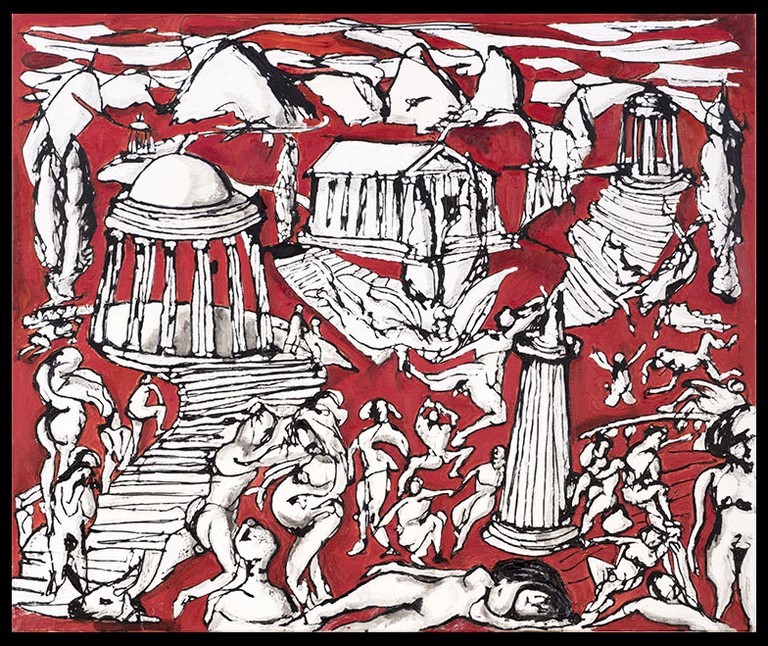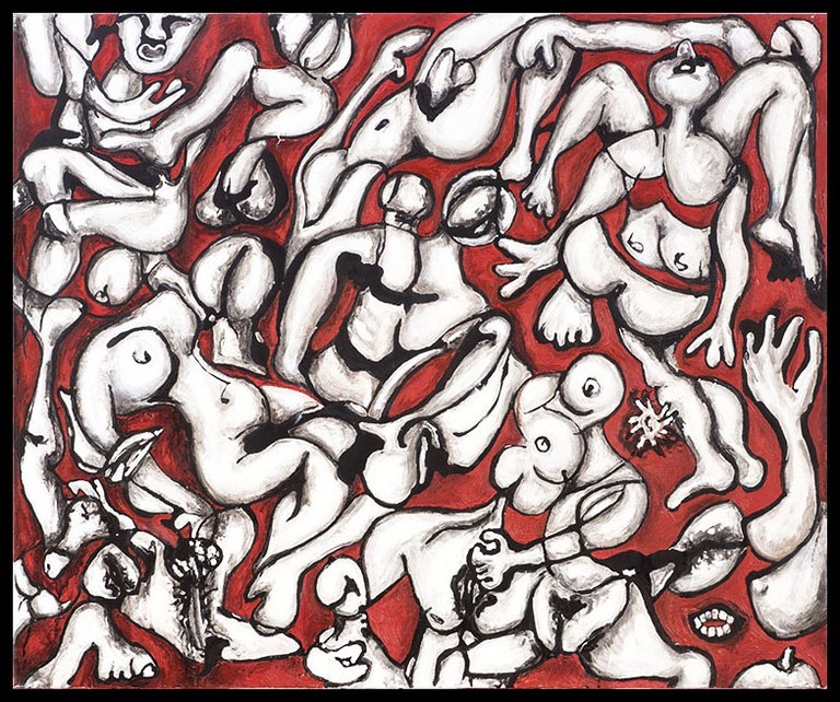 Y ¿cómo lo consigue? Recurriendo a una técnica clásica como el óleo y únicamente utilizando tres colores: blanco, negro y rojo, del que toma el nombre. El rojo, un color tradicionalmente difícil, se registra por “simplicidad”.